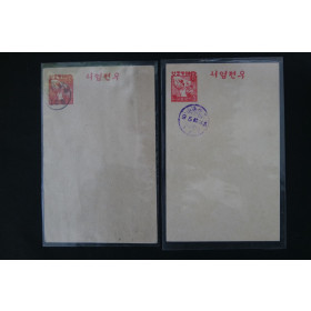 충남 홍산 95전 별납인, 대한민국 10원 수납인 날인의 해방조선 기념엽서 2매