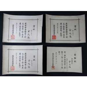 배재고등보통학교 1학년 상장(소화11년), 2학년 상장(소화12년), 3학년 상장(소화13년), 배재 중학교 5학년 개근상장(소화 15년)