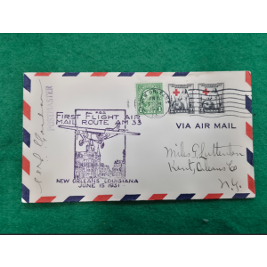 항공우편 초일봉피로 뉴올리온스와 루이시아나 간의 1931년 6월 15일 항공우편 초일봉피이다.