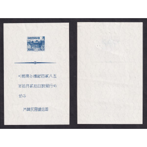 1952년 10월20일 발행의 한국조폐공사 물결무늬 보통 2000원 충렬사 증정용 쉬트