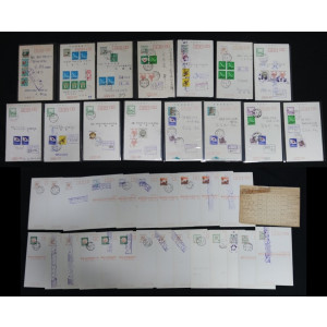 2)전라북도 내 분국일부인 관백 24종. 감곡 유정, 금산사, 전주 팔복, 전북대학, 이리공단, 함열 용안 역전, 전주대학, 전주 법원 등 전라북도 내 분국 우체국의 일부인으로 내국인 철인과 로라인, 외체인 철인과 로라인 등 일부인 일괄 자료.