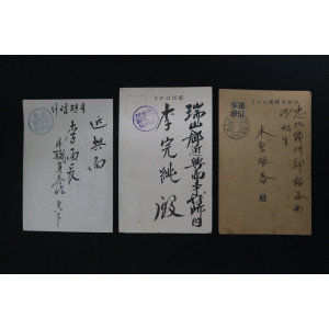 죽산우편국의 20년(1945년) 5월18일 접수인 날인의 통신사무 우편엽서와 당진우체소의 절수별납우편, 태안우체국의 요금별납우편 등 실체 3매
