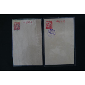 충남 홍산 95전 별납인, 대한민국 10원 수납인 날인의 해방조선 기념엽서 2매 > 관제엽서(해방 후)