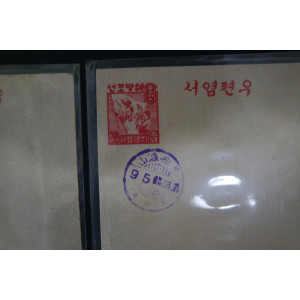 1947년 10월 1일 우편요금이 인상되어 해방조선 기념엽서 5전에 충남 홍산우체국에서 95전 별납인과 대한민국 10원 수납인을 날인하였다.