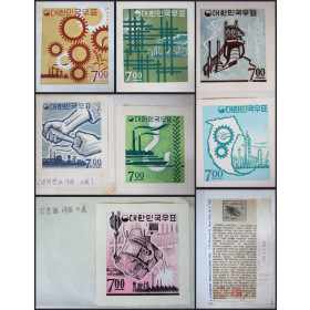 경제개발 우표를 발행하기 위한 원도 중 미채택 원도로 강춘환선생님 작품 3점, 전희한선생님 작품 4점 합 7점 일괄자료