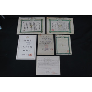 공병학교 우등상장(1966년), 육군 화학기처 공로표창장(1967년), 육군병기학교 성적표(1967년), 제5군단 하사관학교 공로표창장(1968년), 공군교육사령부 통신전자학교 수료증서(1978년), 국방부장관의 임관사령장(1978년) 등 일괄자료