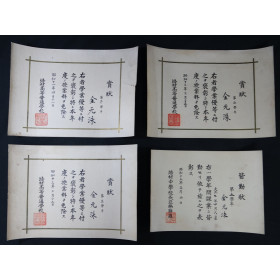 배재고등보통학교 1학년 상장(소화11년), 2학년 상장(소화12년), 3학년 상장(소화13년), 배재 중학교 5학년 개근상장(소화 15년)