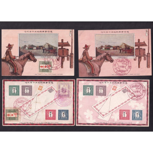 대정10년(1921년)발행의 통신사업창시 50년 기념엽서 2종(조선총독부발행, 용산우체국기념인), 통신사업창시 50년 기념엽서 2종(체신성발행, 大阪(대판), 神戶(신호) 기념인)