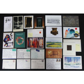 • 작가의 본인서명 연하장 5장을 포함한 연하장과 엽서 22점