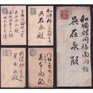 전남 동복군(同福郡) 군수시절에 받은 연하엽서를 비롯해 4점의 엽서와 1점의 피봉이다.