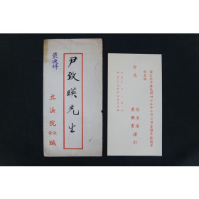 • 尹致暎(윤치영, 1898~1996)을 張道藩(장도반)이 星期日(성기일)에 초대하는 초대장