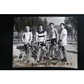 1968년 7월3일의 충주 싸이클 선수일동 사진으로 좌측 하단에 습기로 인한 벗겨짐 현상이 있음.